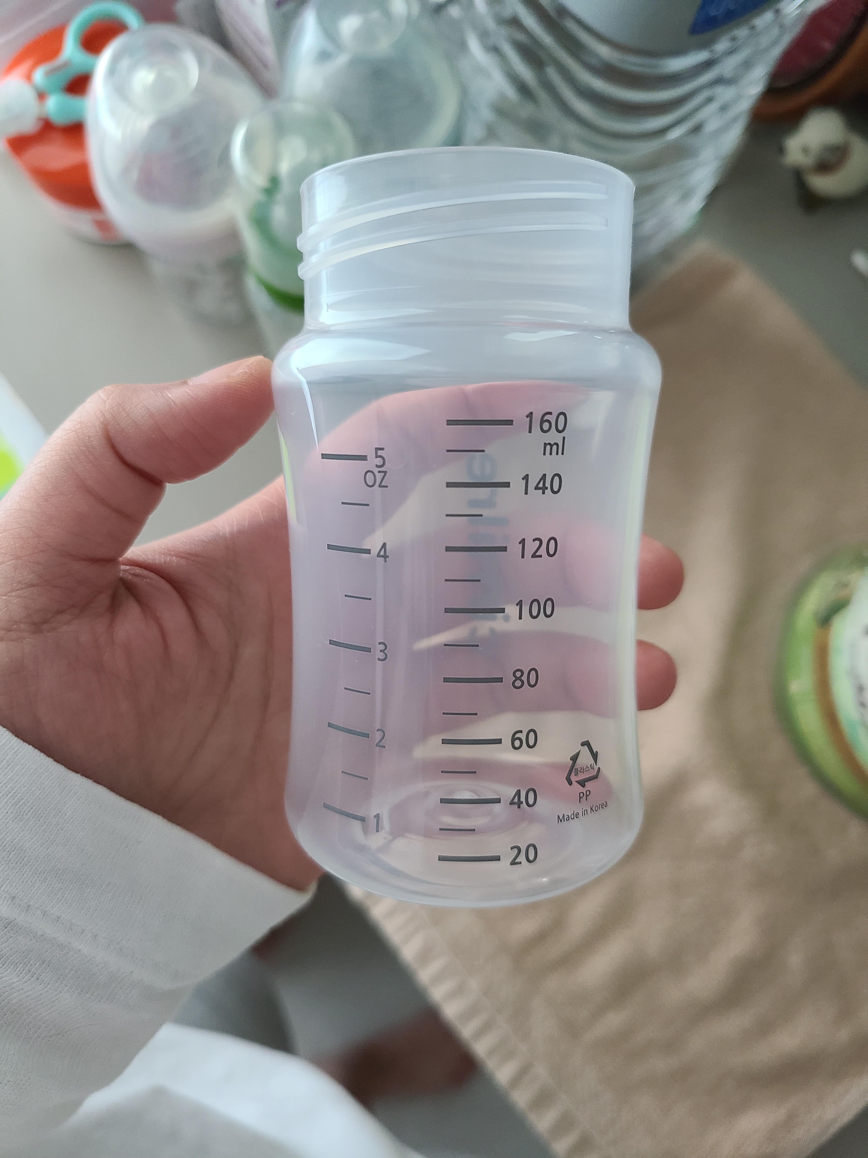 140ml까지 눈금이 표기된 작은 젖병을 사용하고 있었기 때문에 160ml까지 표기된 시밀레 젖병은 이제 기본 100~120ml를 먹으려는 우리 씩씩이에게 딱 필요한 젖병이었음