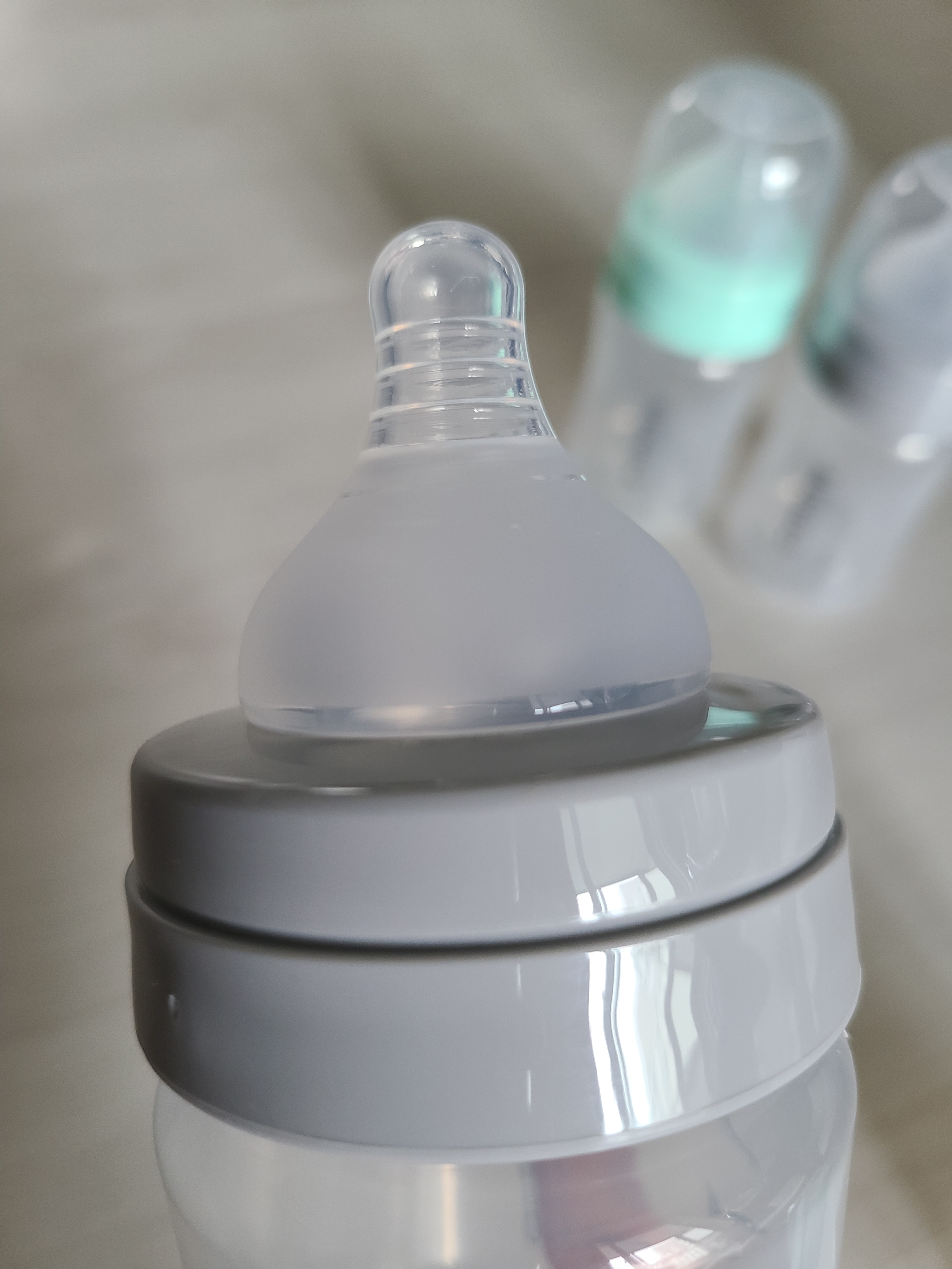 뚜껑을 뺄 때 병과 젖꼭지의 결합된 부분이 틀어져서 이런 문제가 발생하는 것 같음