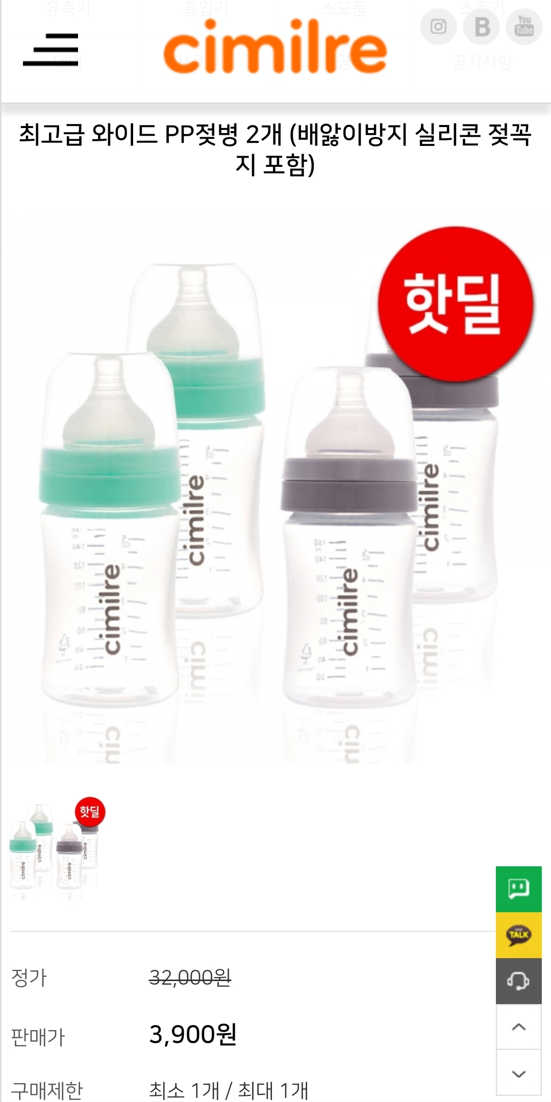 그러다 앞서 말한 착한 마음과 가격으로 젖병을 판매하는 곳을 알게 됐음